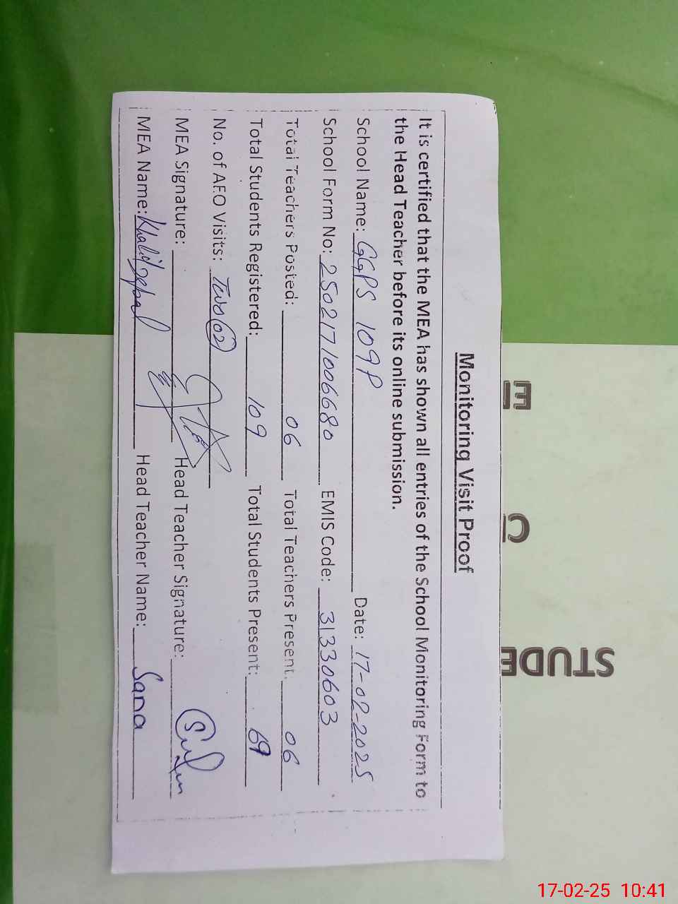 | EMIS Code: 31330603 | Name of School: GGPS 109/P | |||