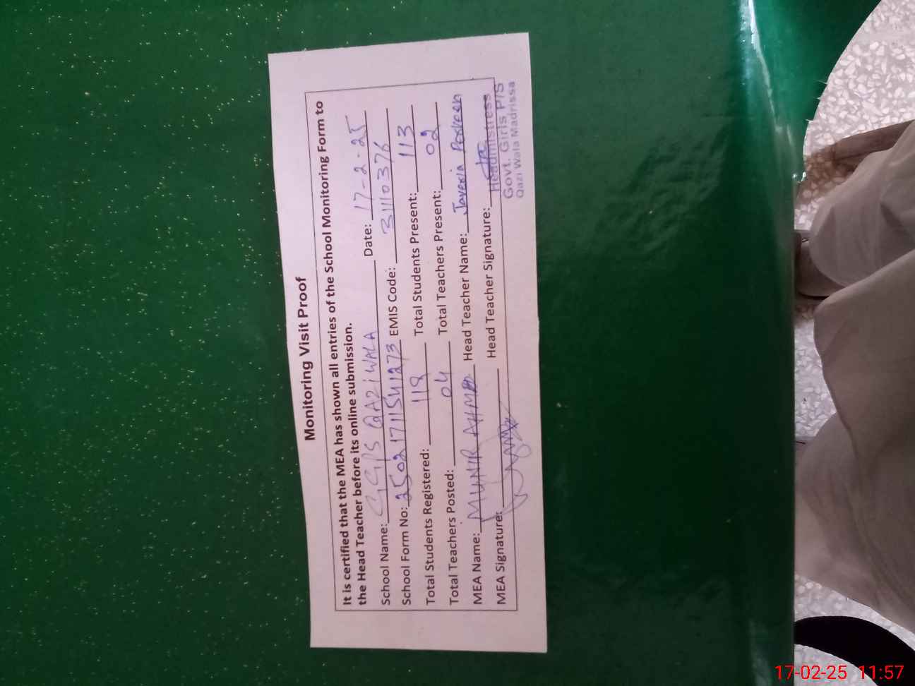 | EMIS Code: 31110376 | Name of School: GGPS QAZI WALA | |||