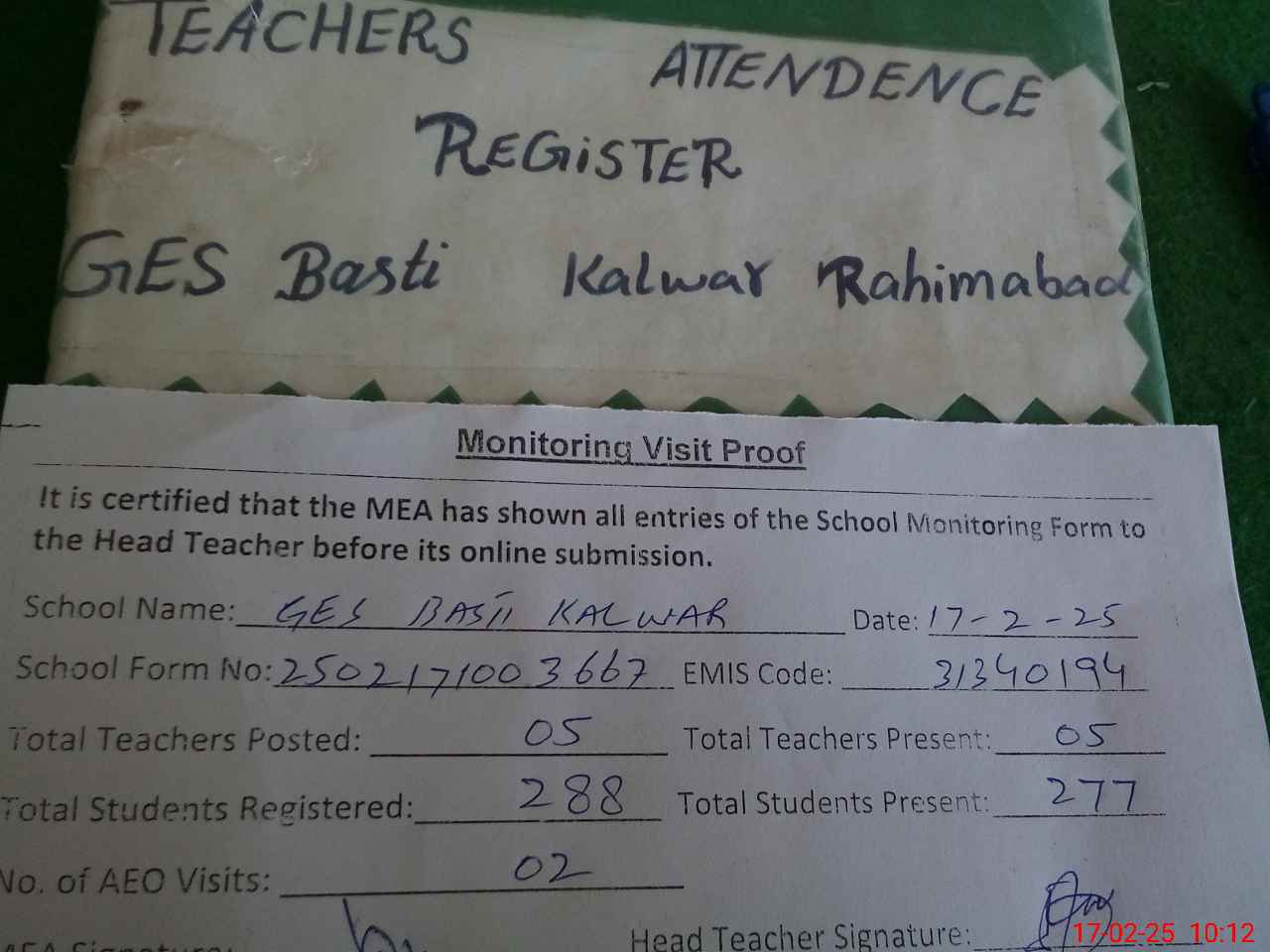 | EMIS Code: 31340194 | Name of School: GES BASTIKALWAR BASTI KALWAR | |||