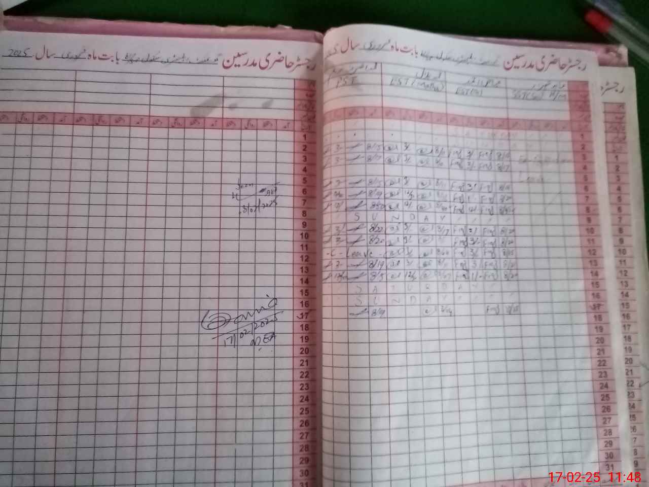 | CNIC | Full Name | Designation | R/C | Absence During Last Calender Month |