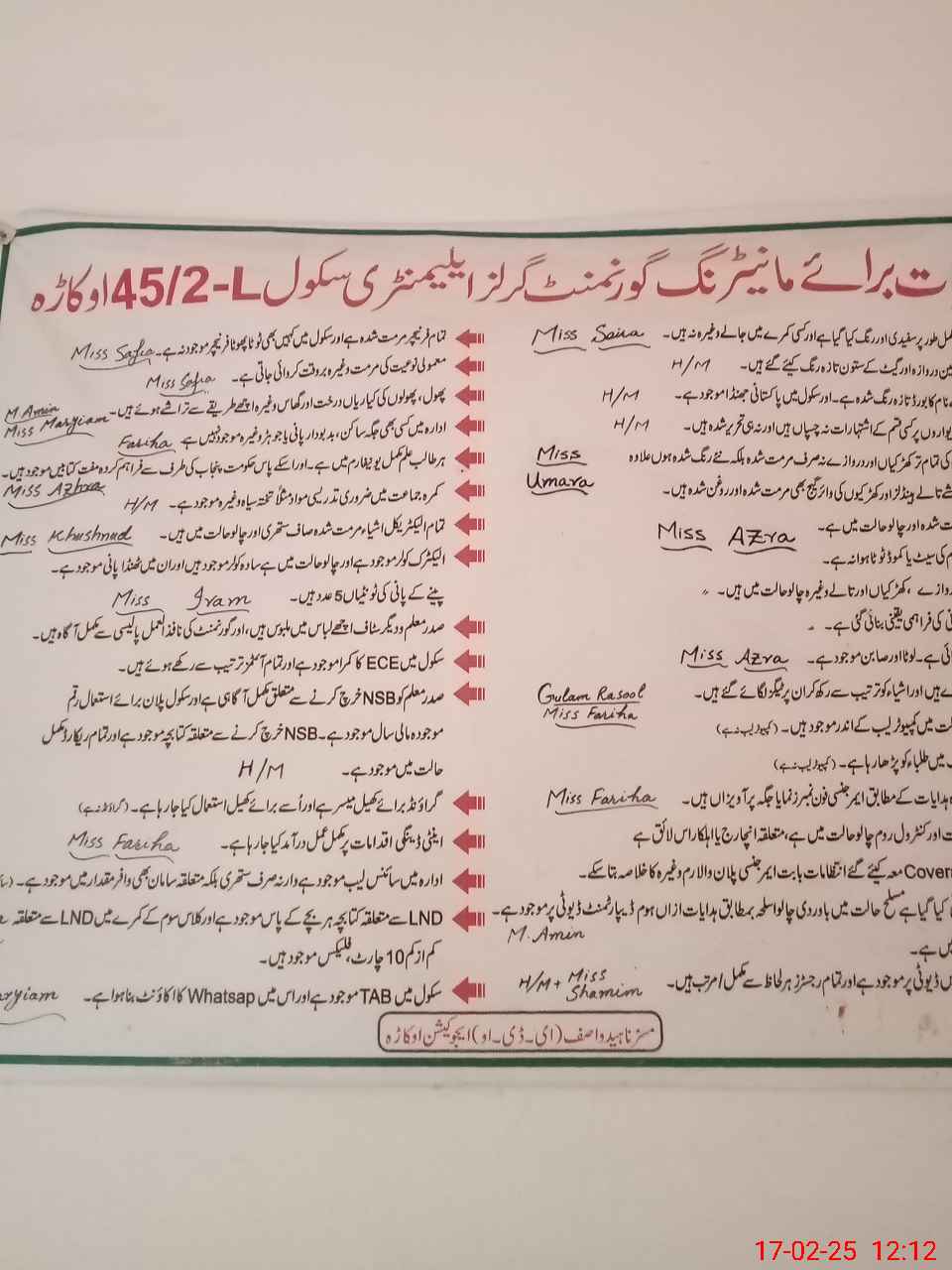 | District: OKARA | Tehsil: OKARA | Markaz: KARMAN WALA - FEMALE | Level: Middle | |
