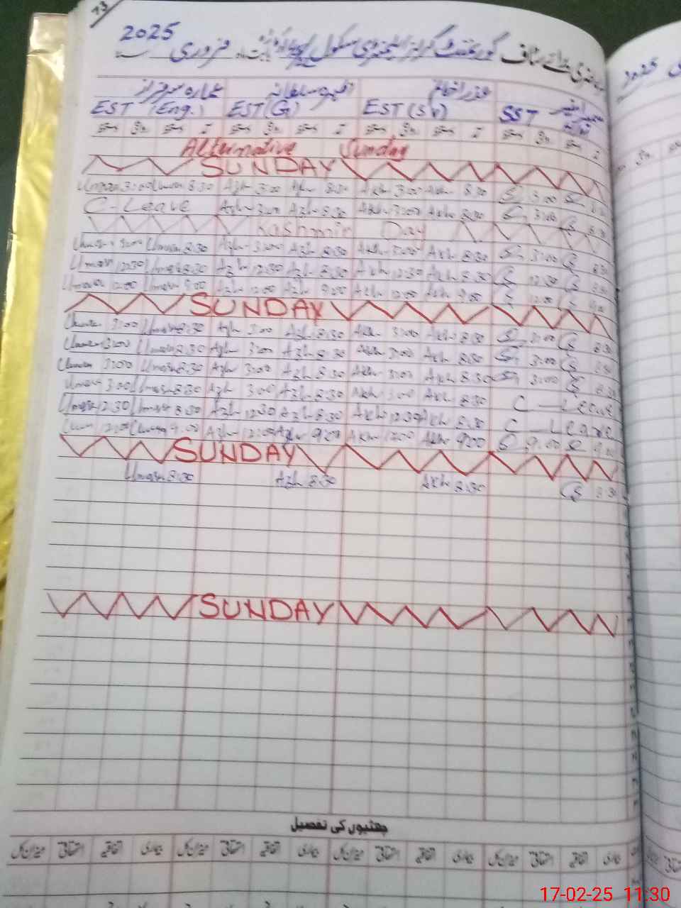 | CNIC | Full Name | Designation | R/C | Absence During Last Calender Month |