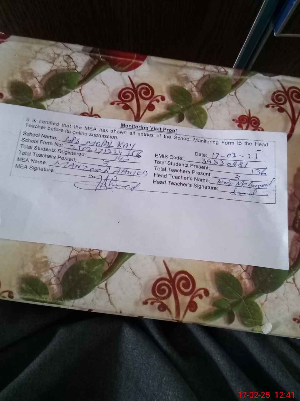 | EMIS Code: 39330881 | Name of School: GPS MOPAL KEY | |||