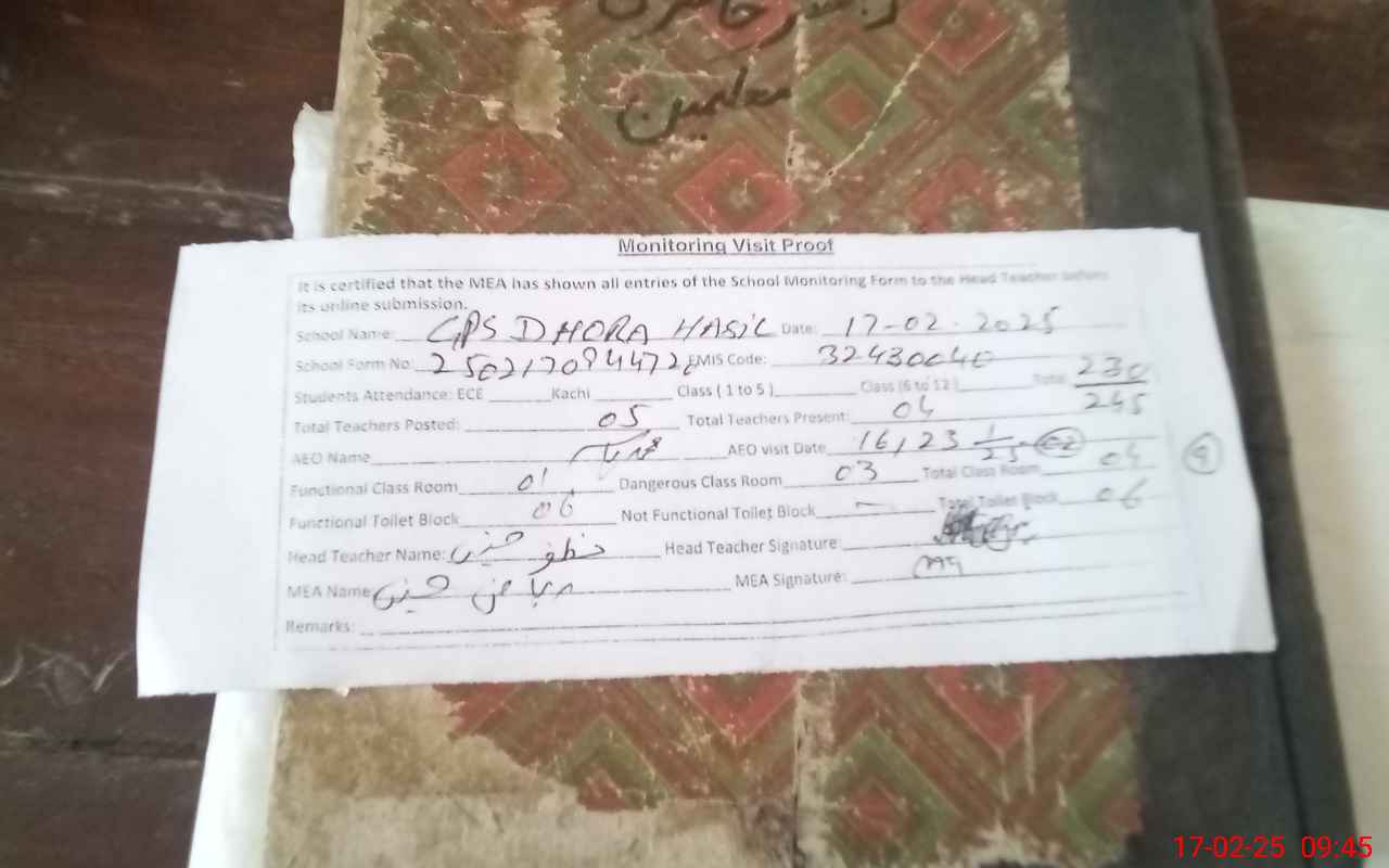 | EMIS Code: 32430040 | Name of School: GPS DHORA HASIL | |||