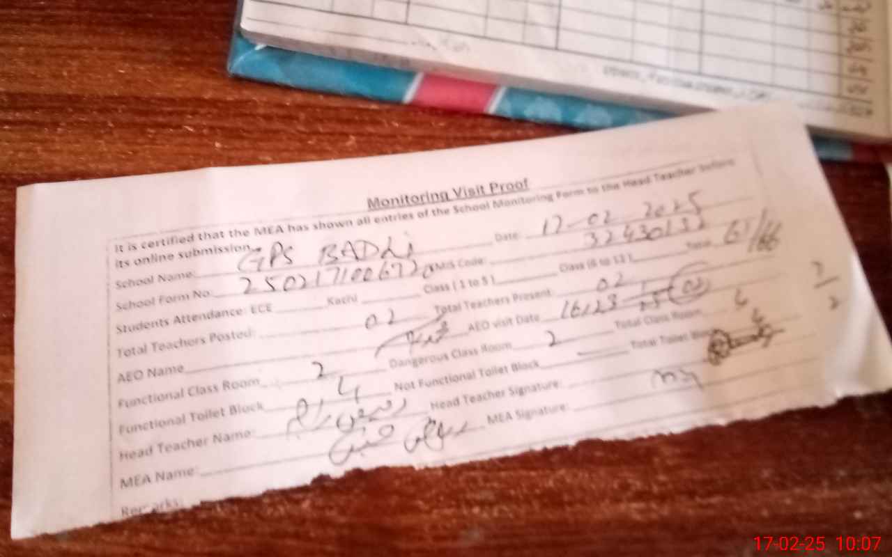 | EMIS Code: 32430132 | Name of School: GPS BADLI | |||