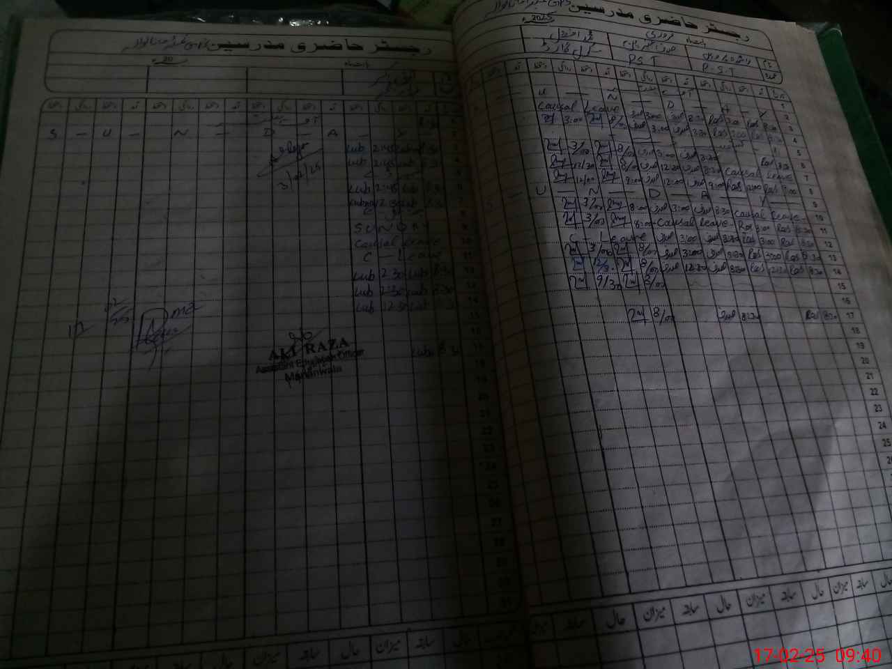 | CNIC | Full Name | Designation | R/C | Absence During Last Calender Month |