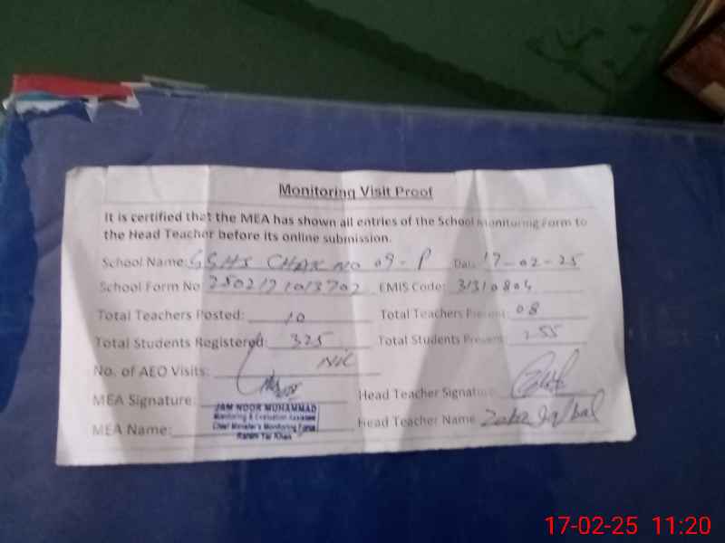 | EMIS Code: 31310804 | Name of School: GGHS CHAK NO. 9/P | |||