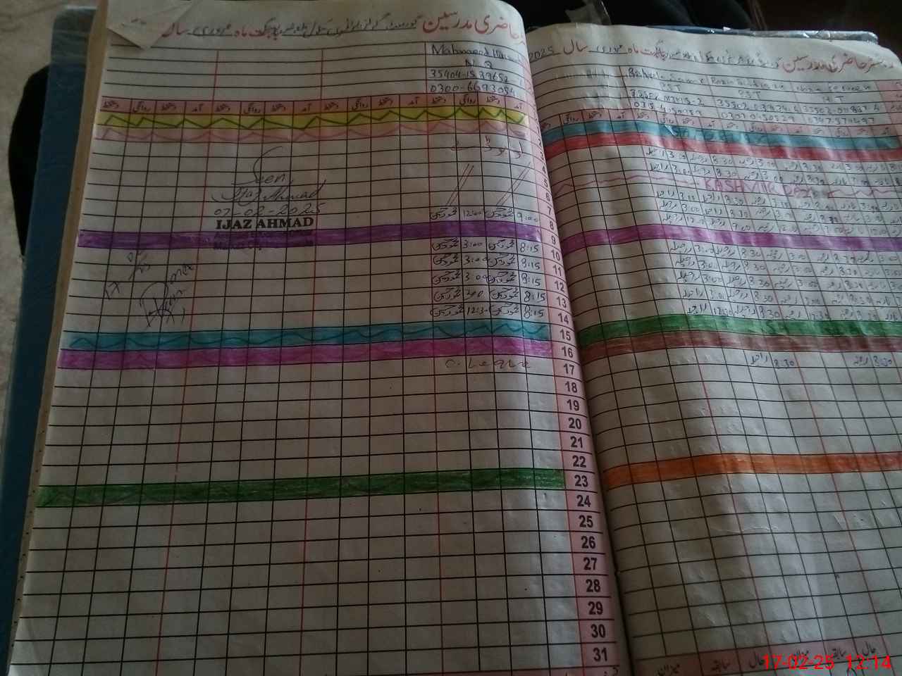 | CNIC | Full Name | Designation | R/C | Absence During Last Calender Month |