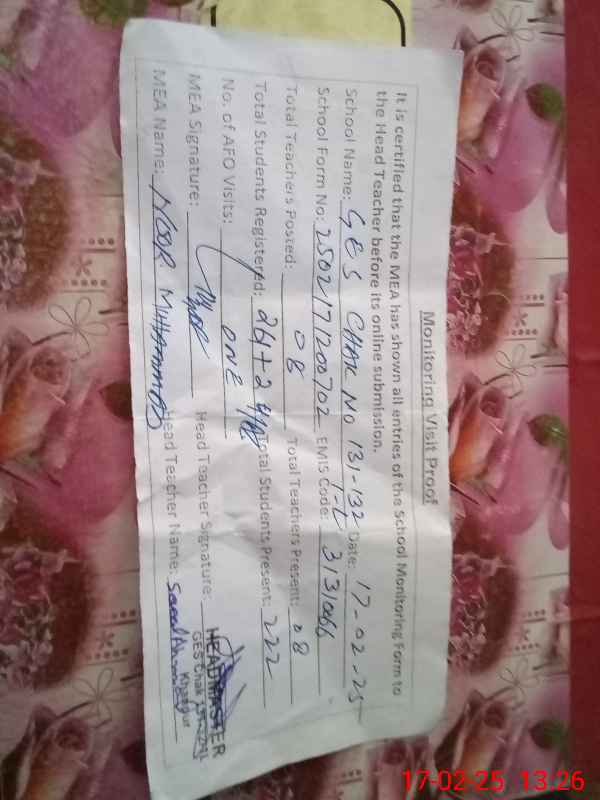 | EMIS Code: 31310066 | Name of School: GES CHAK NO 131-32/1-L | |||