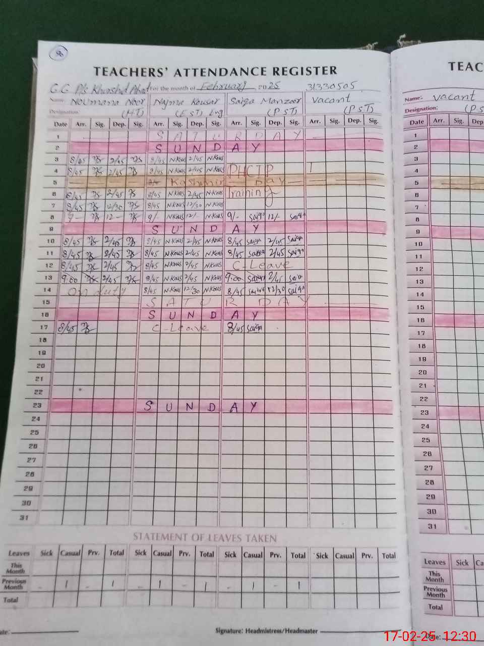 | Name: No**** No**** Sa**** Designation: (School Headmaster's/Headmistress's) PST Phone/Cell Number: 03**** |