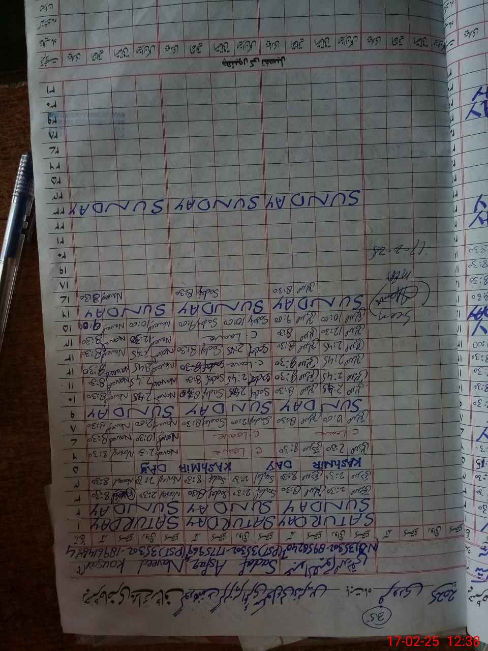 | CNIC | Full Name | Designation | R/C | Absence During Last Calender Month |