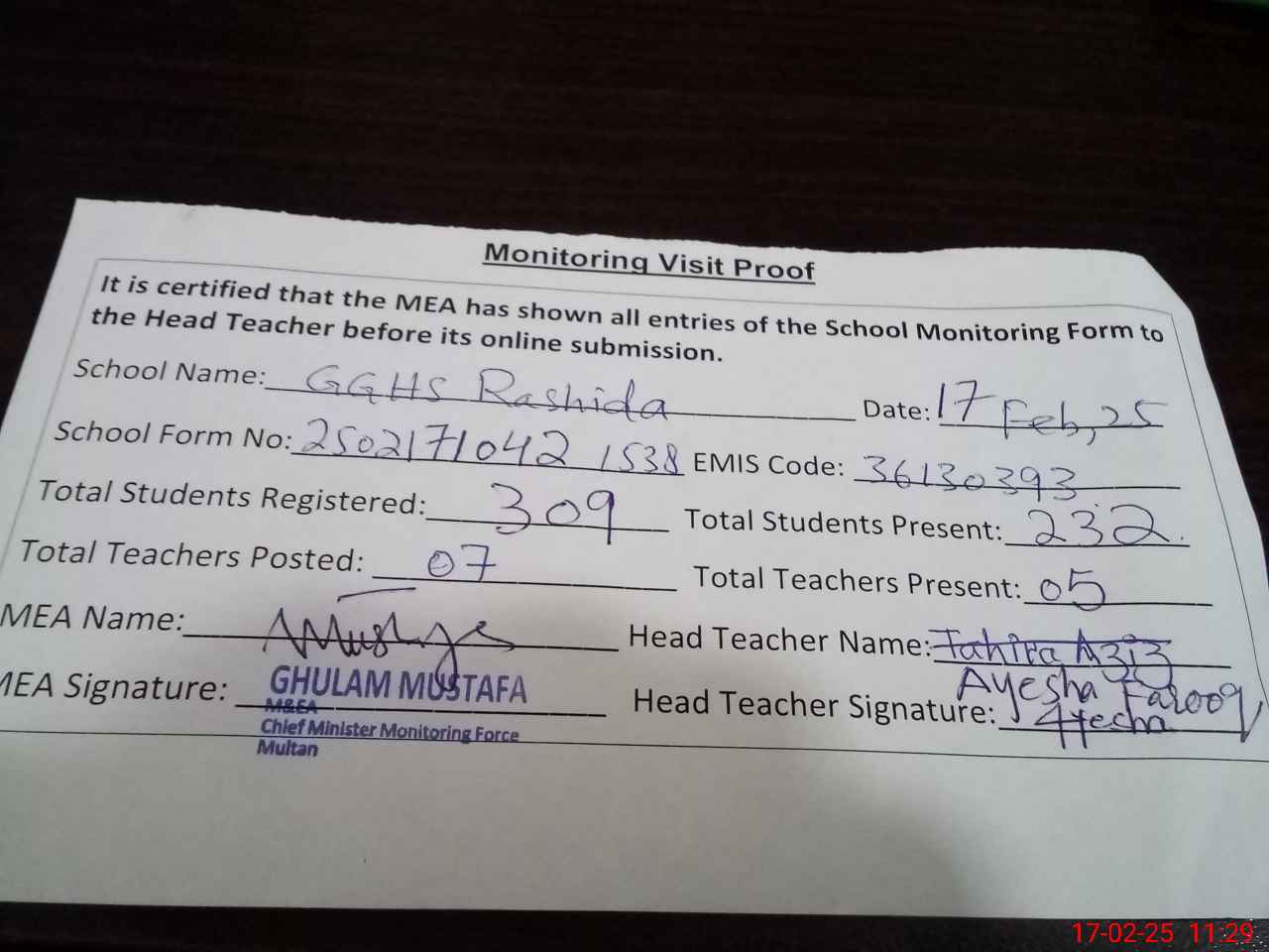 | EMIS Code: 36130393 | Name of School: GGHS RASHIDA, KOT ABBAS SHAHEED | |||