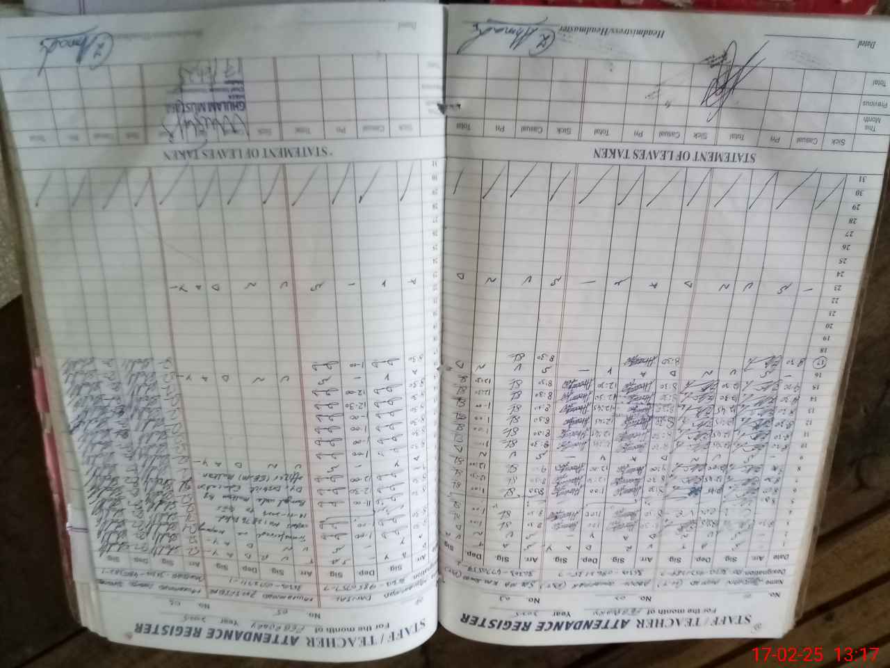| CNIC | Full Name | Designation | R/C | Absence During Last Calender Month |