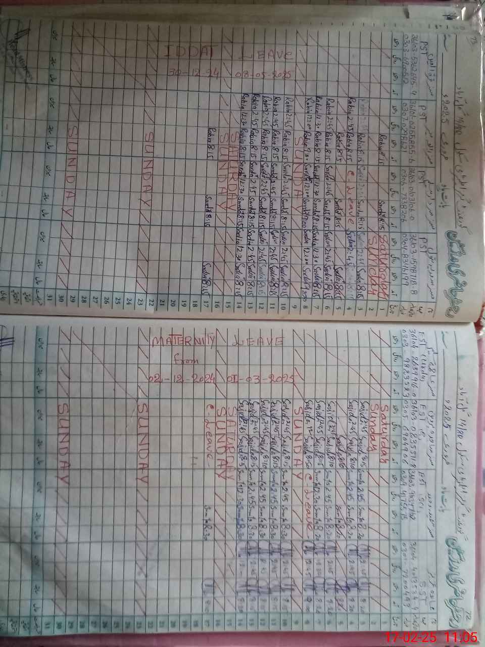 | Leave | Duty | Absent | Maternity | Medical | Ex- Pak |