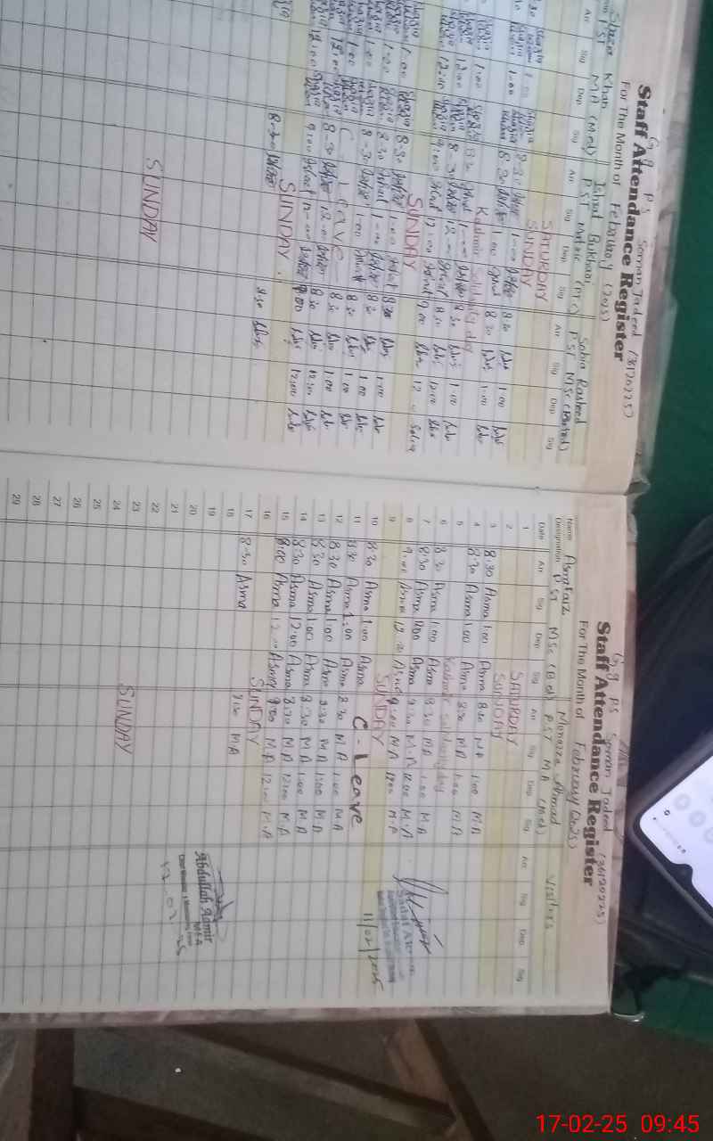 | CNIC | Full Name | Designation | R/C | Absence During Last Calender Month |