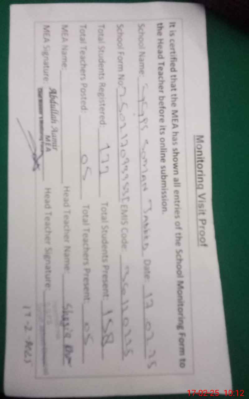 | EMIS Code: 36120225 | Name of School: GGPS SOMAN JADEED SHUJABAD | |||