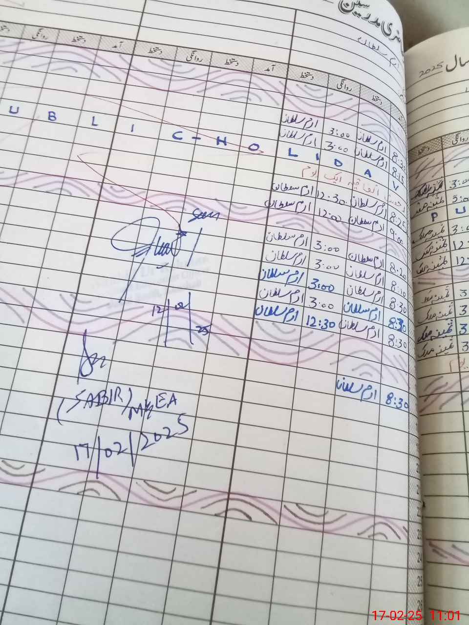 | CNIC | Full Name | Designation | R/C | Absence During Last Calender Month |