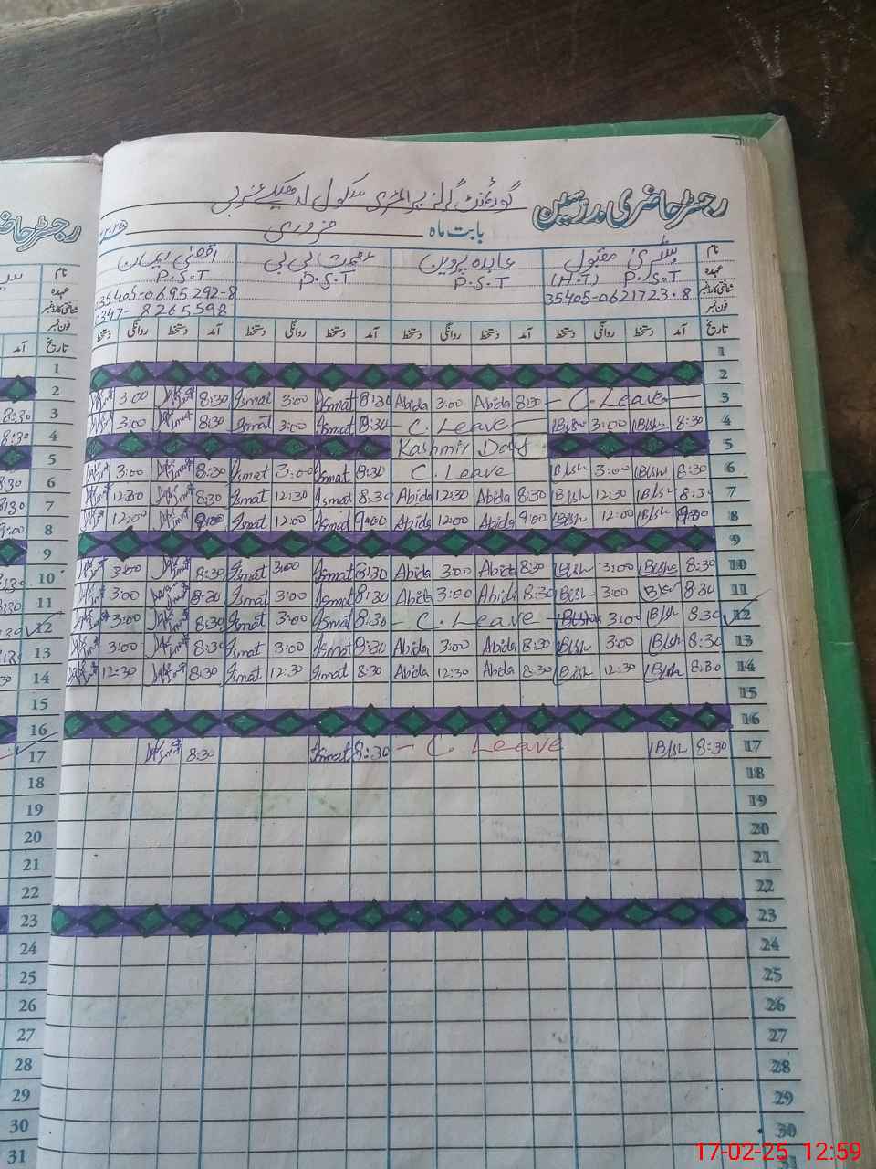 | Name: BU**** MA**** Designation: (School Headmaster's/Headmistress's) PST Phone/Cell Number: 03**** |