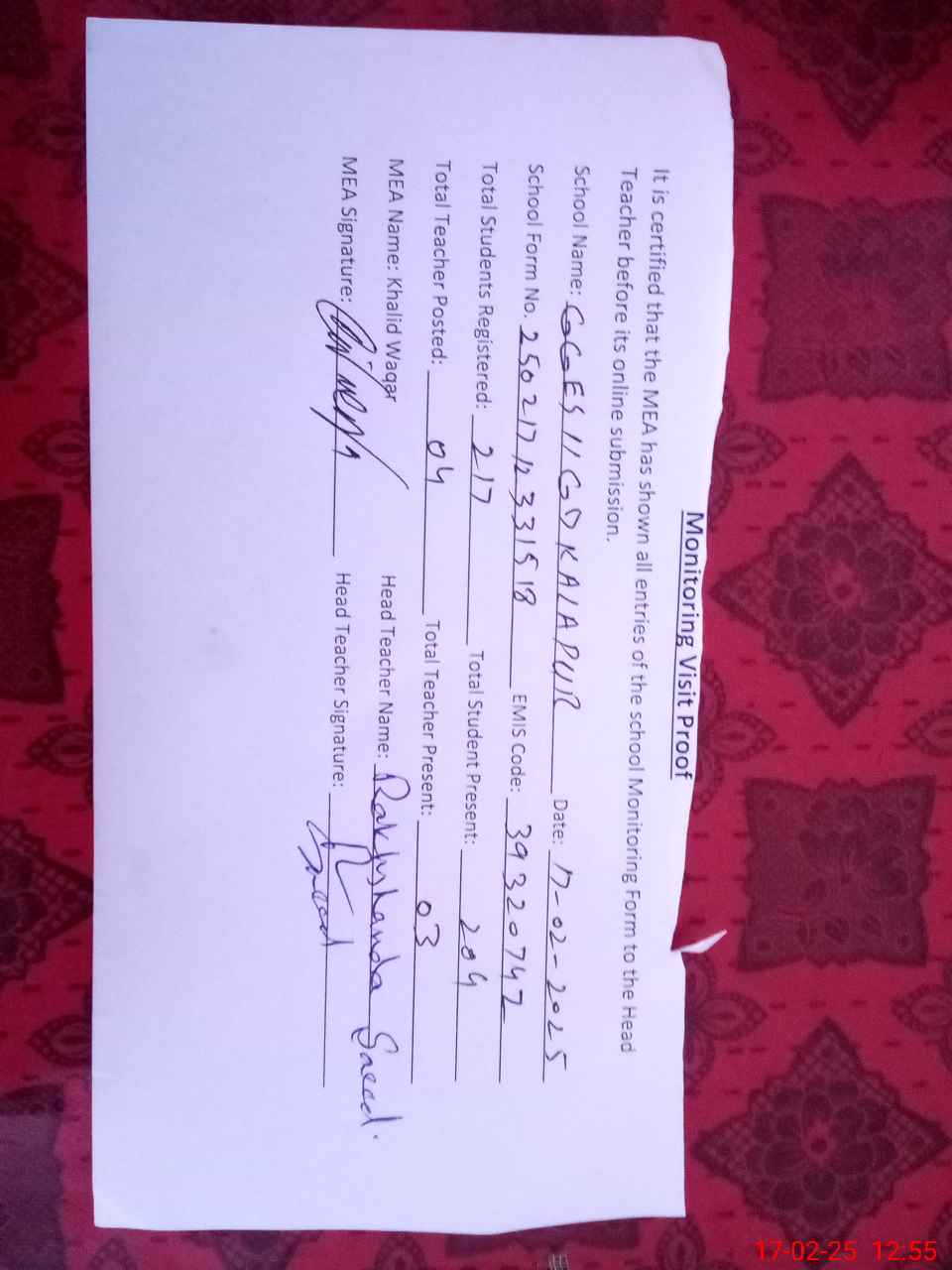 | EMIS Code: 39320742 | Name of School: GGES 11/G.D KALAPUR | |||