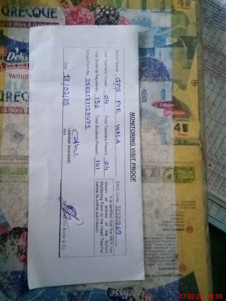 | EMIS Code: 32330269 | Name of School: GPS PIR WALA | |||