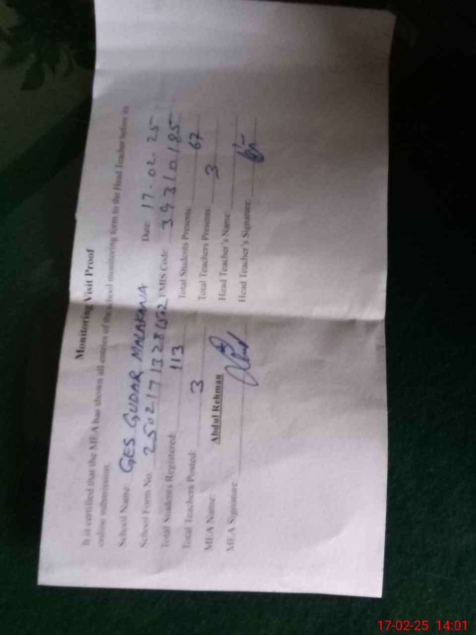 | EMIS Code: 39310185 | Name of School: GES GUDAR MALKANA | |||