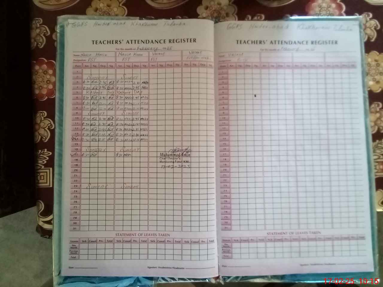 | EMIS Code: 36430357 | Name of School: GGPS HAIDER ABAD KHAKWANI, TULAMBA | |||