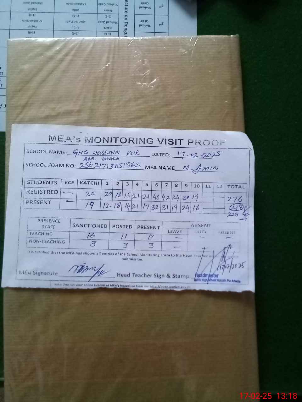| EMIS Code: 36430069 | Name of School: GHS HUSSAIN PUR AARI WALA, TULAMBA | |||