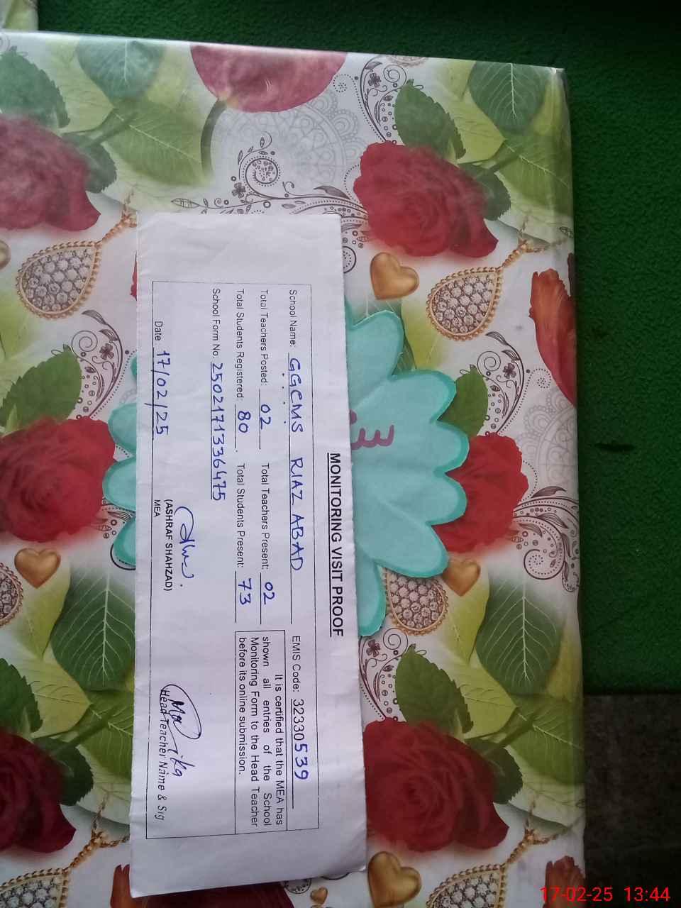 | EMIS Code: 32330539 | Name of School: GGCMS RIAZ ABAD | |||
