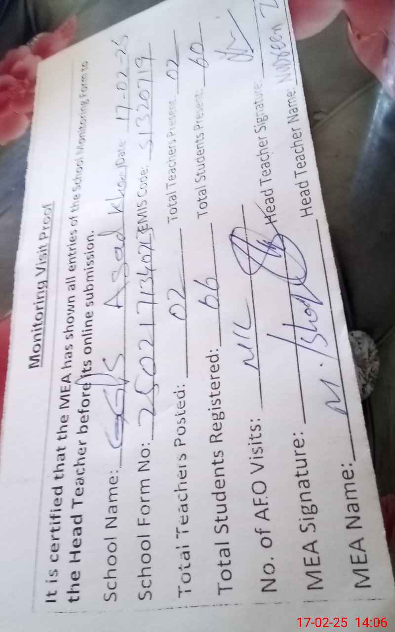 | EMIS Code: 31320719 | Name of School: GGPS ASAD KHAN | |||