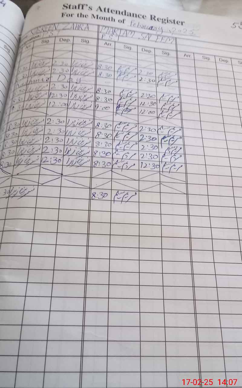 | Name: Na**** Za**** Designation: (School Headmaster's/Headmistress's) PST/PTC/JV Phone/Cell Number: 03**** |