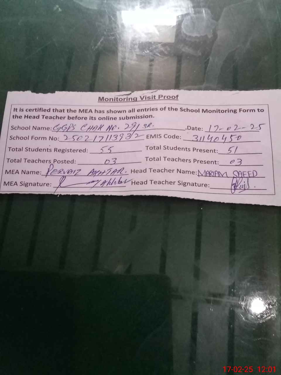 | EMIS Code: 31140450 | Name of School: GGPS CHAK NO. 29/3-R | |||