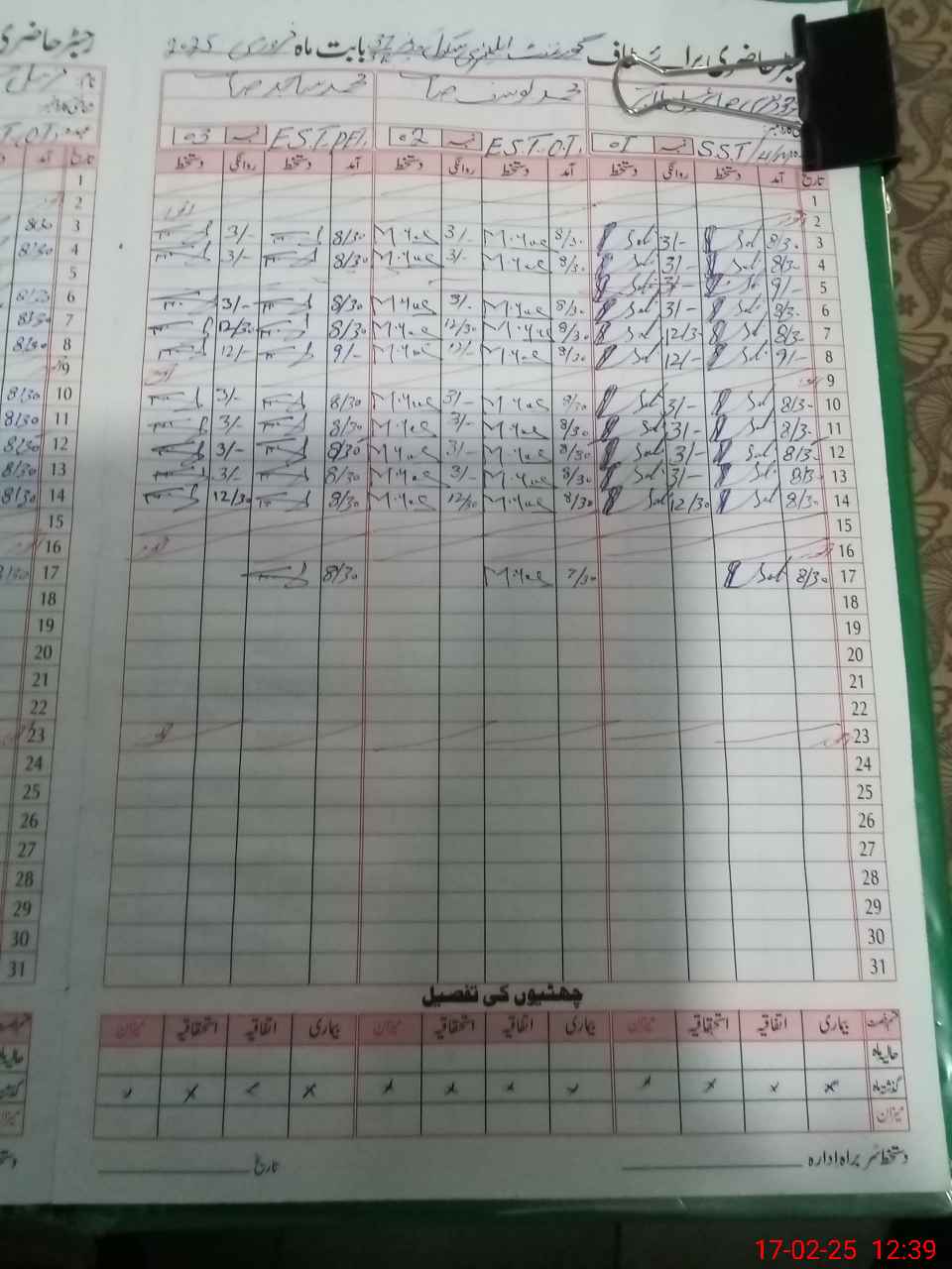 | CNIC | Full Name | Designation | R/C | Absence during last cal. month |