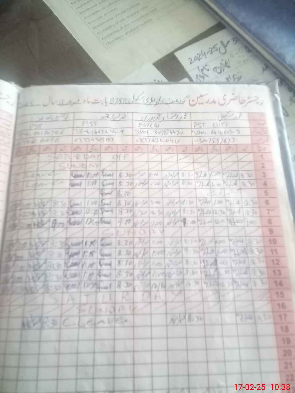| Name: Mu**** Sh**** Designation: (School Headmaster's/Headmistress's) PST Phone/Cell Number: 03**** |