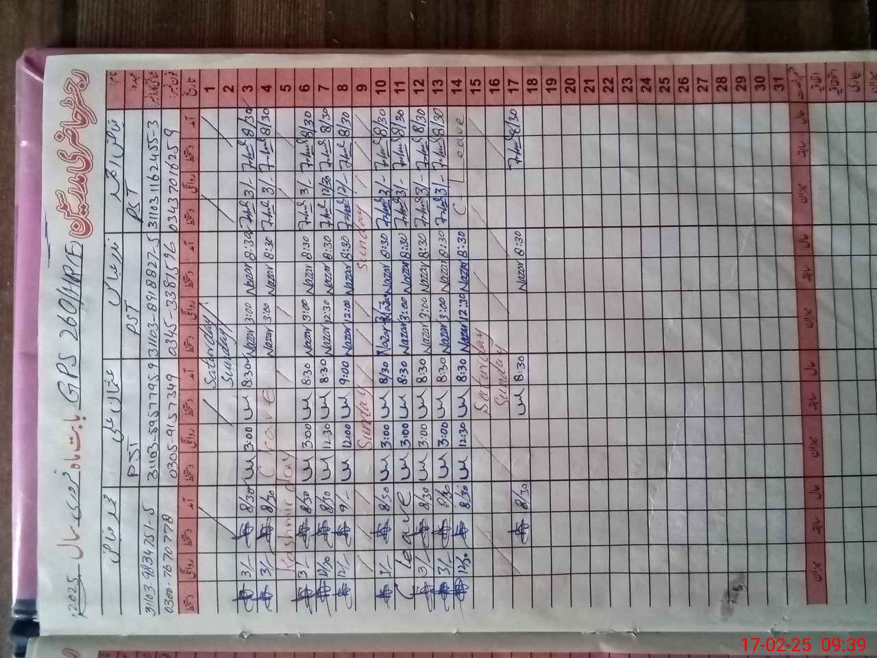 | CNIC | Full Name | Designation | R/C | Absence During Last Calender Month |