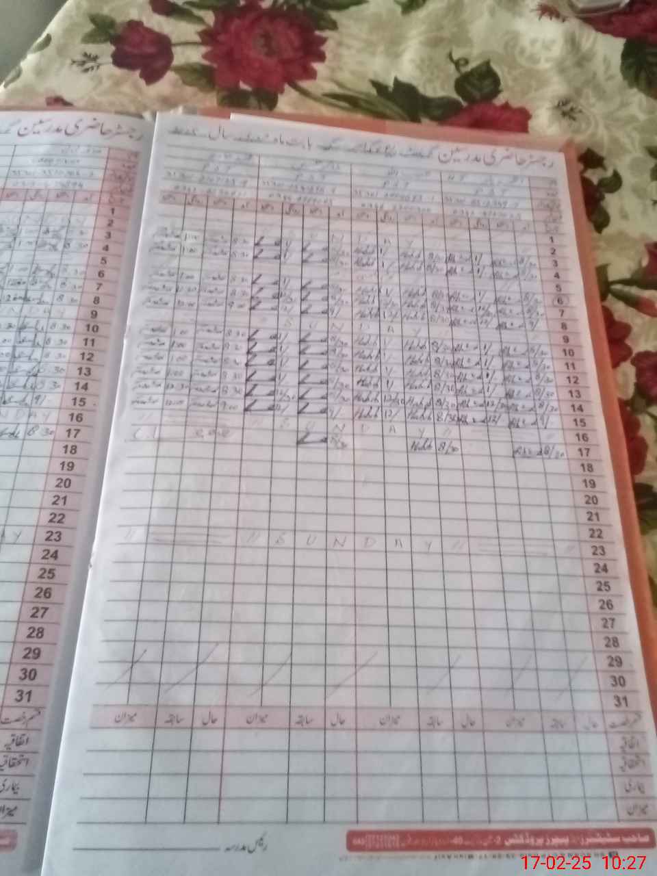 | CNIC | Full Name | Designation | R/C | Absence During Last Calender Month |