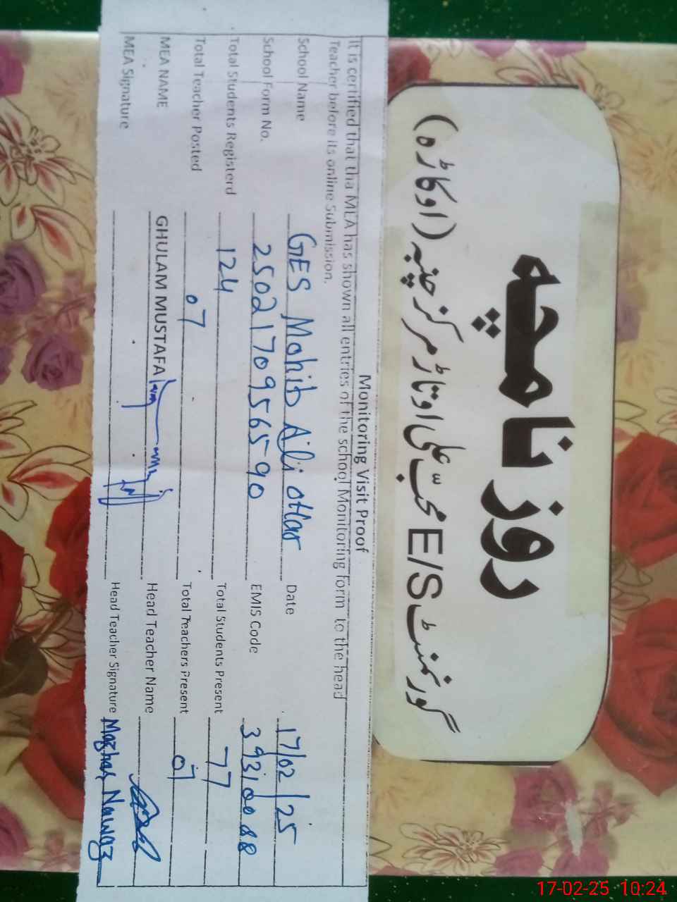 | Name: FA**** SH**** MA**** Designation: (School Headmaster's/Headmistress's) S.S.T.(Arts) Phone/Cell Number: 03**** |