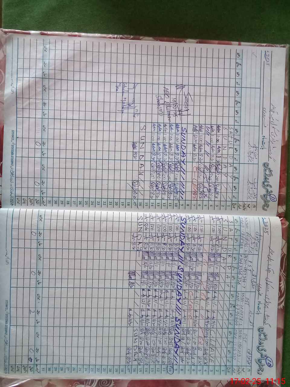 | CNIC | Full Name | Designation | R/C | Absence During Last Calender Month |