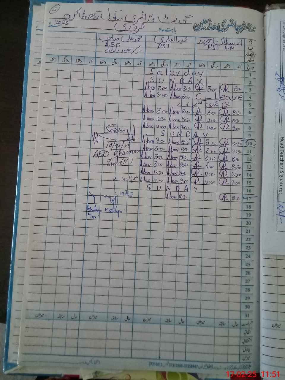 | CNIC | Full Name | Designation | R/C | Absence During Last Calender Month |