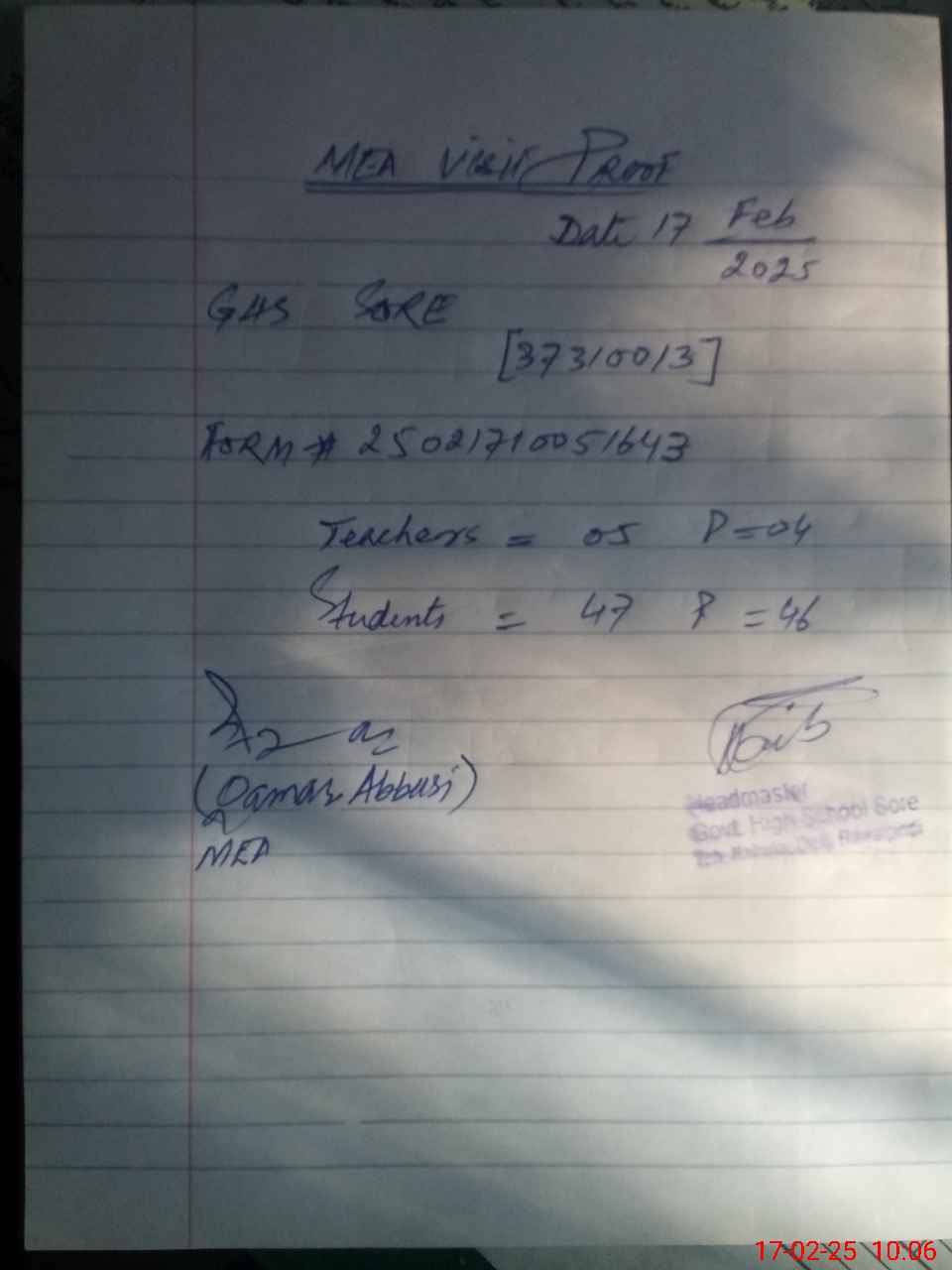 | Certified that this School was Inspected by the Undersigned MEA/DMO Today and the Information Stated Above is as Per Record. | |||||