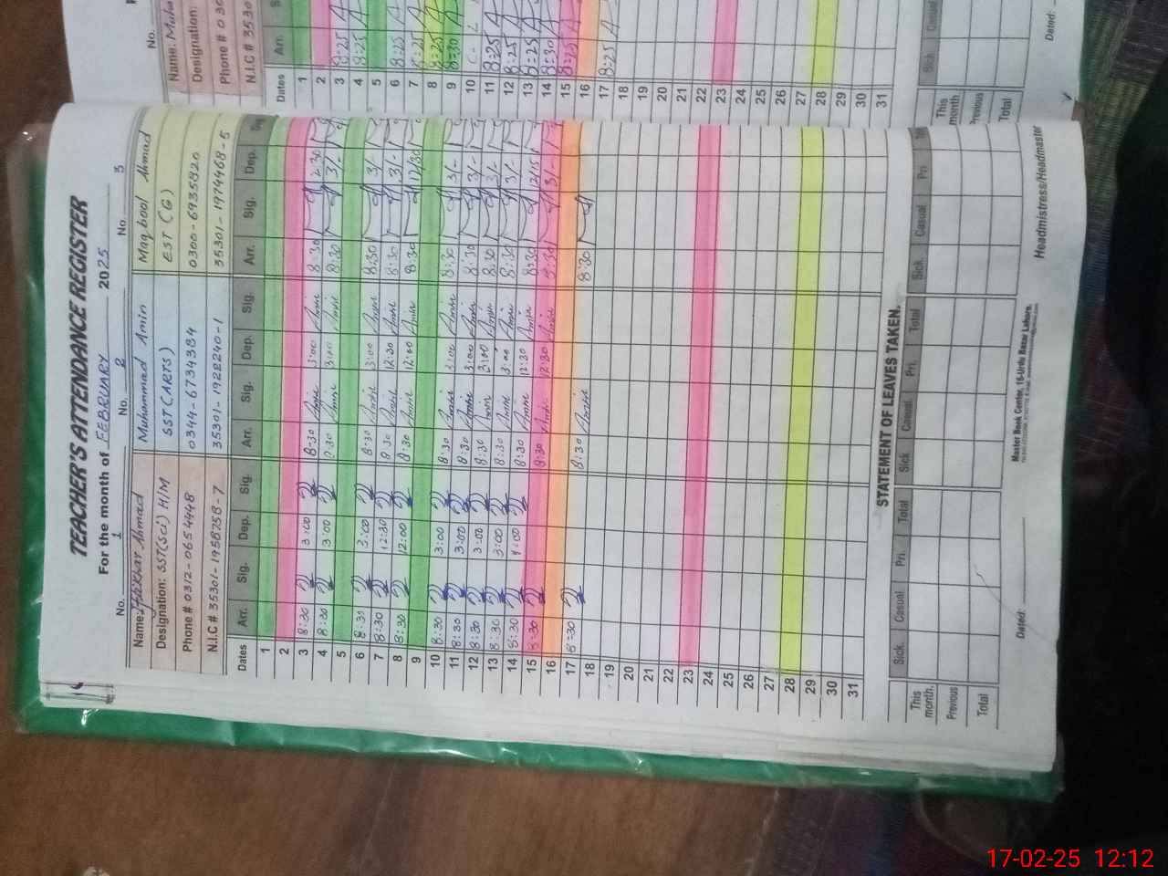 | Name: IF**** AH**** Designation: (School Headmaster's/Headmistress's) SST INCHARGE HM Phone/Cell Number: 03**** |