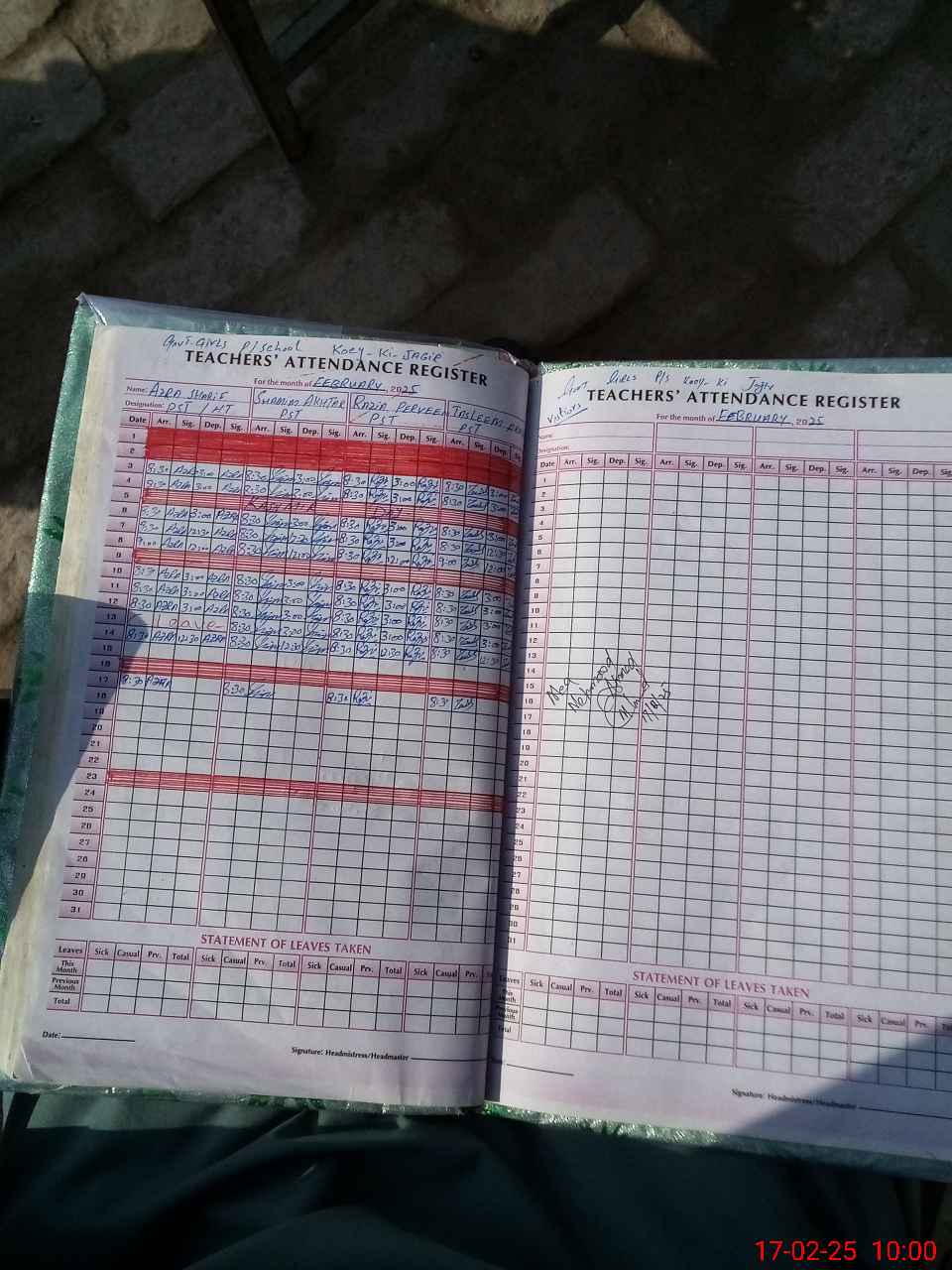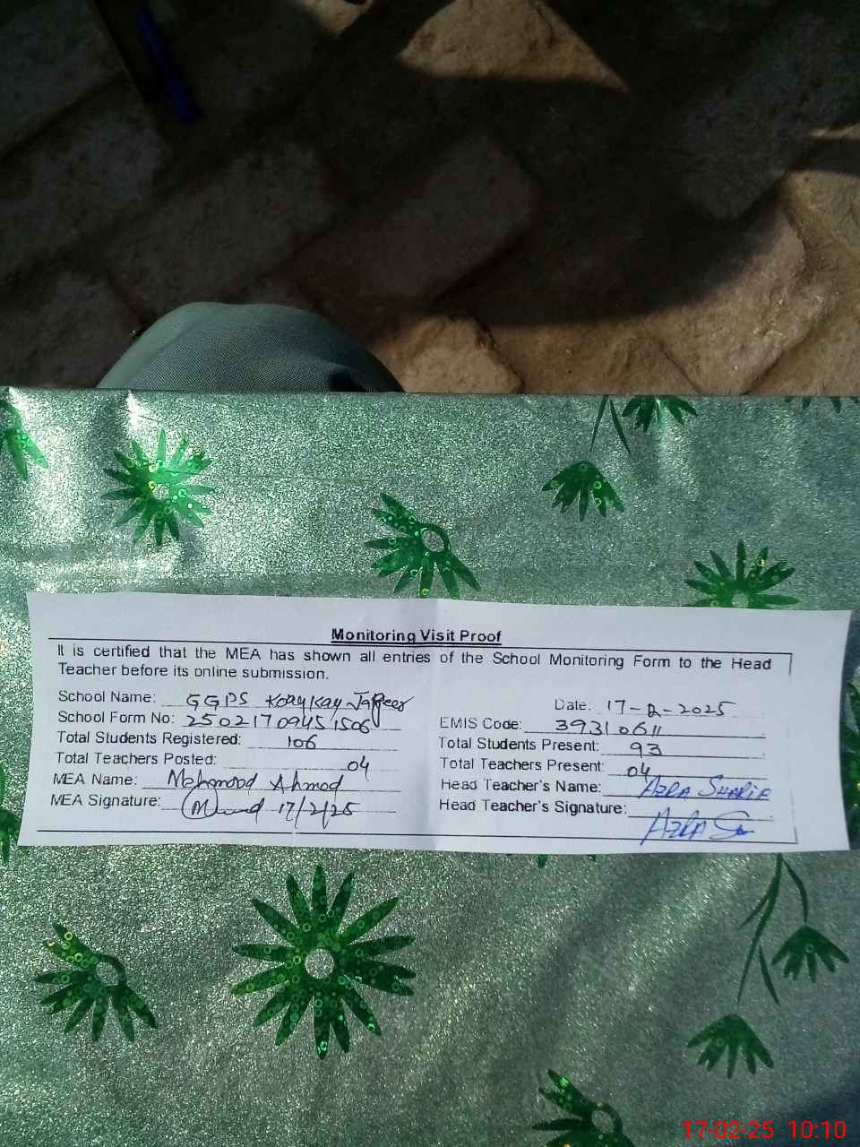 | Name: AZ**** SH**** Designation: (School Headmaster's/Headmistress's) PST Phone/Cell Number: 03**** |