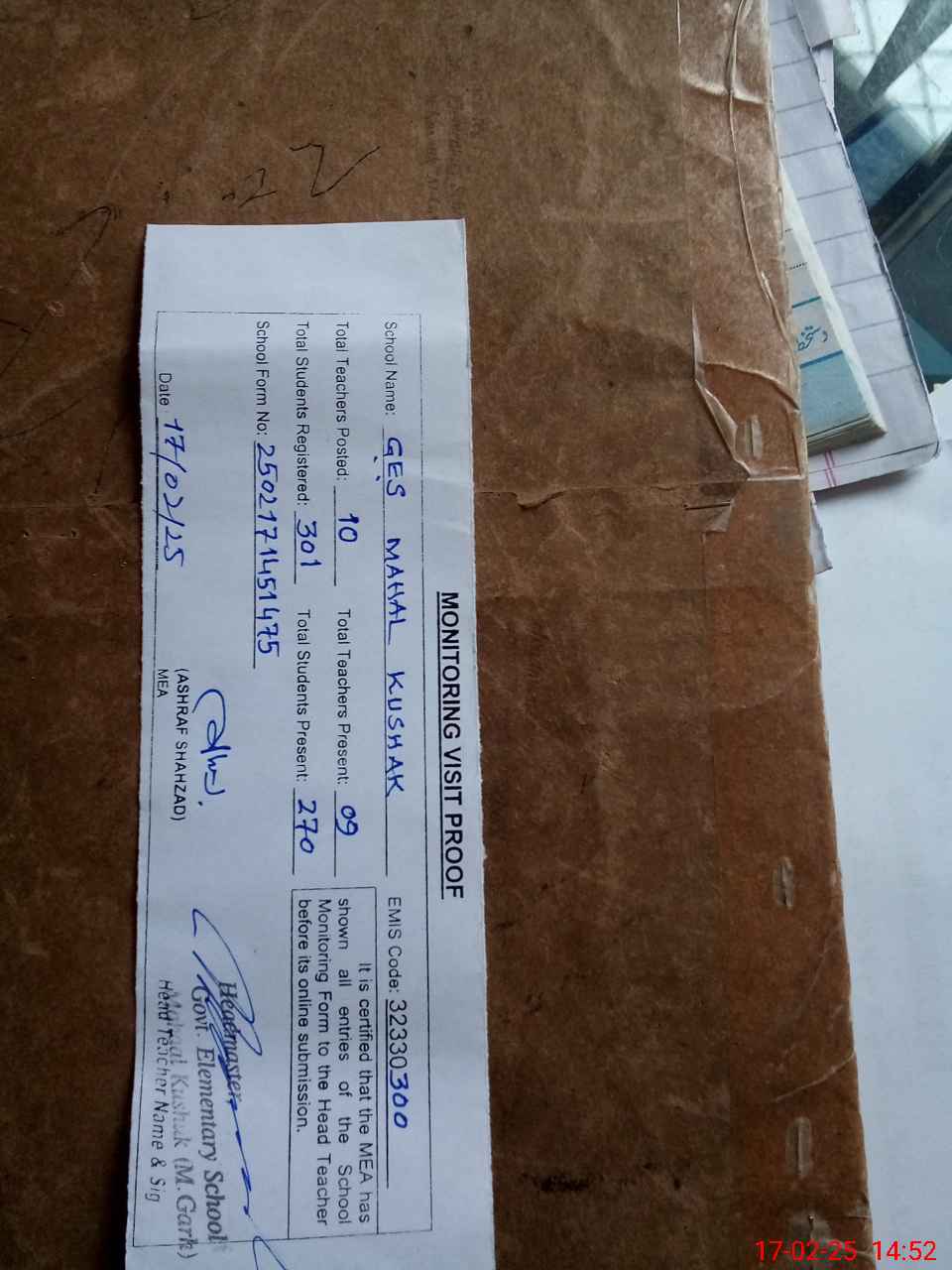 | EMIS Code: 32330300 | Name of School: GES MAHAL KUSHAK | |||