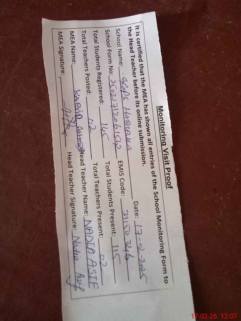 | EMIS Code: 31150346 | Name of School: GGPS HABIB KA | |||