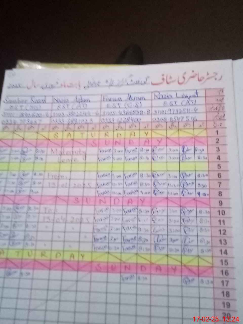| 31**** | Ru**** Al**** | Regular | 18 | 0 | 0 | 18 | 0 | 0 | 0 | 0 | 0 | Maternity | |