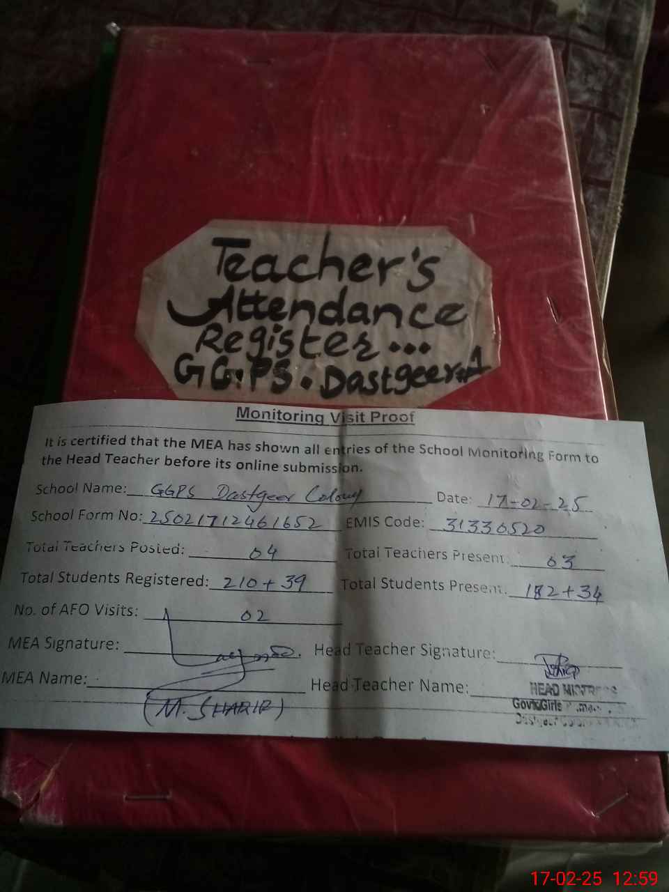 | EMIS Code: 31330520 | Name of School: GGPS DASTGEER COLONY NO. 1 | |||