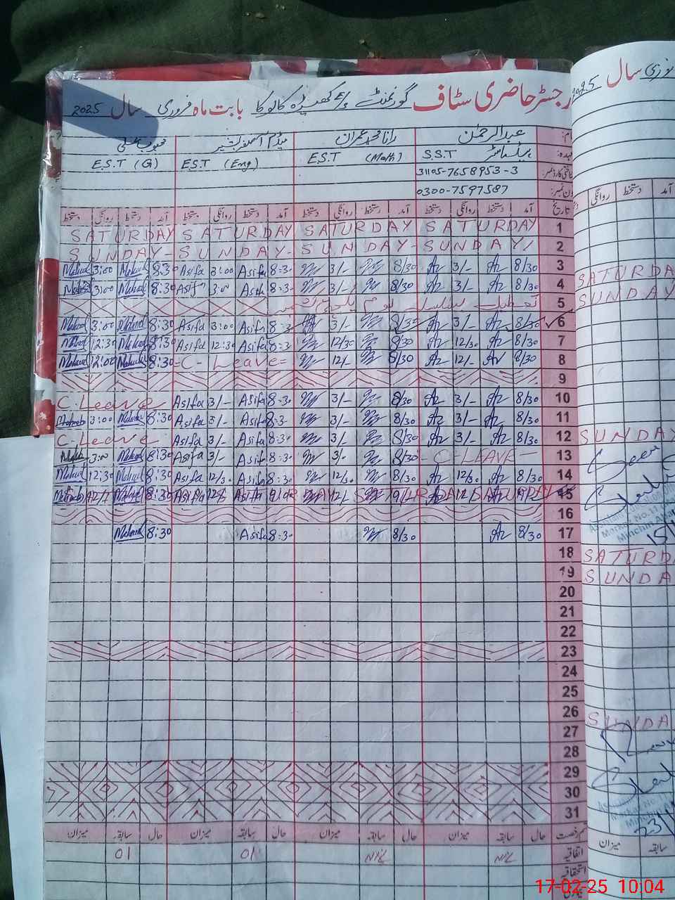 | Name: Ab**** Re**** Designation: (School Headmaster's/Headmistress's) SST Phone/Cell Number: 03**** |