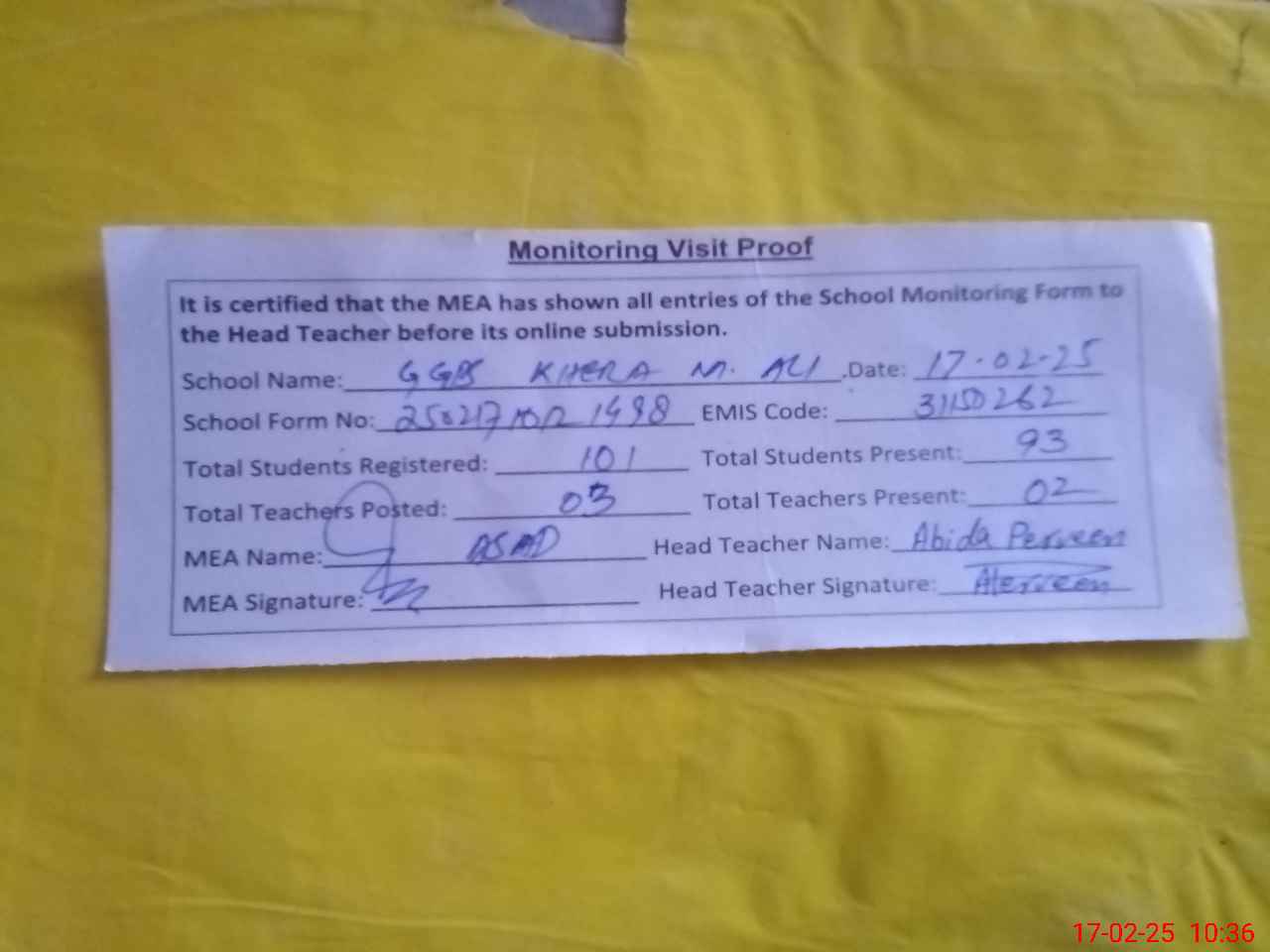 | EMIS Code: 31150262 | Name of School: GGPS KHERA MUHAMMAD ALI | |||