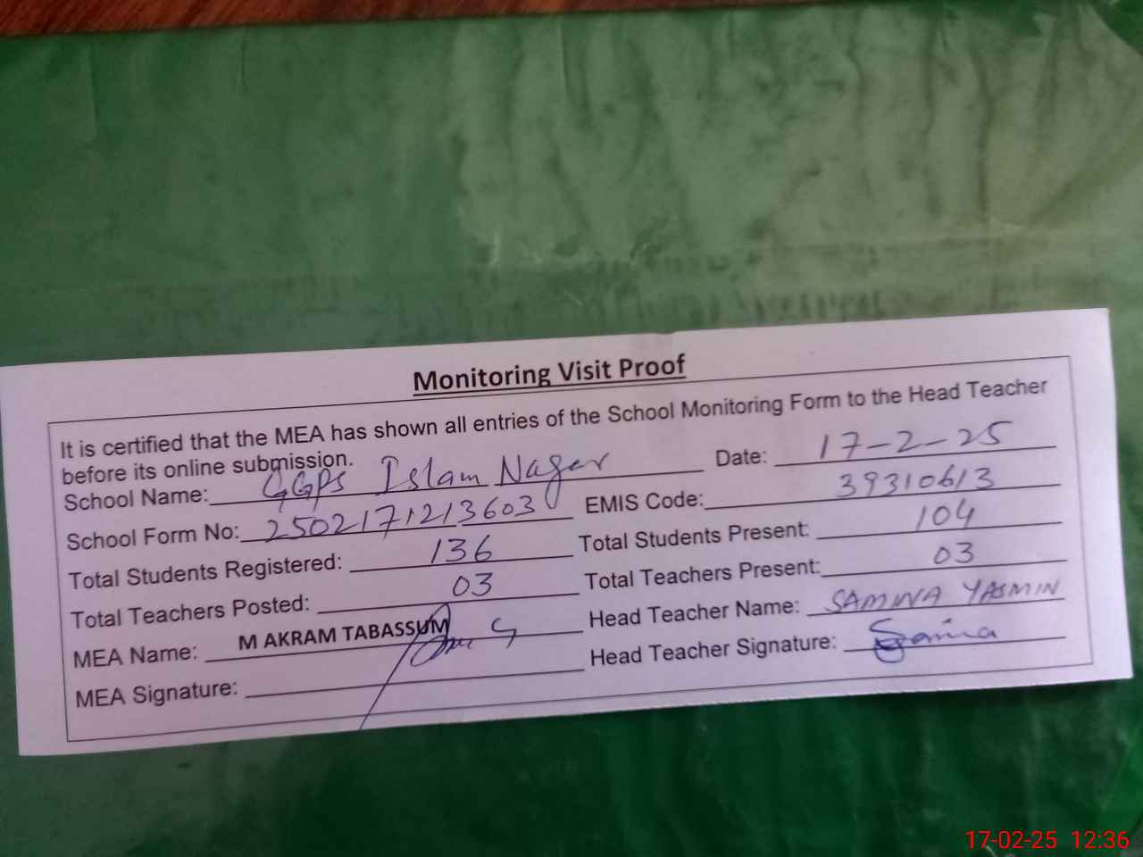 | EMIS Code: 39310613 | Name of School: GGPS ISLAM NAGAR HAVELI | |||