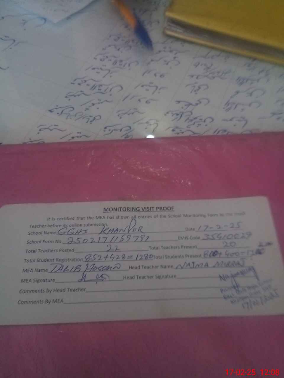 | EMIS Code: 35410029 | Name of School: GGHS KHANPUR | |||