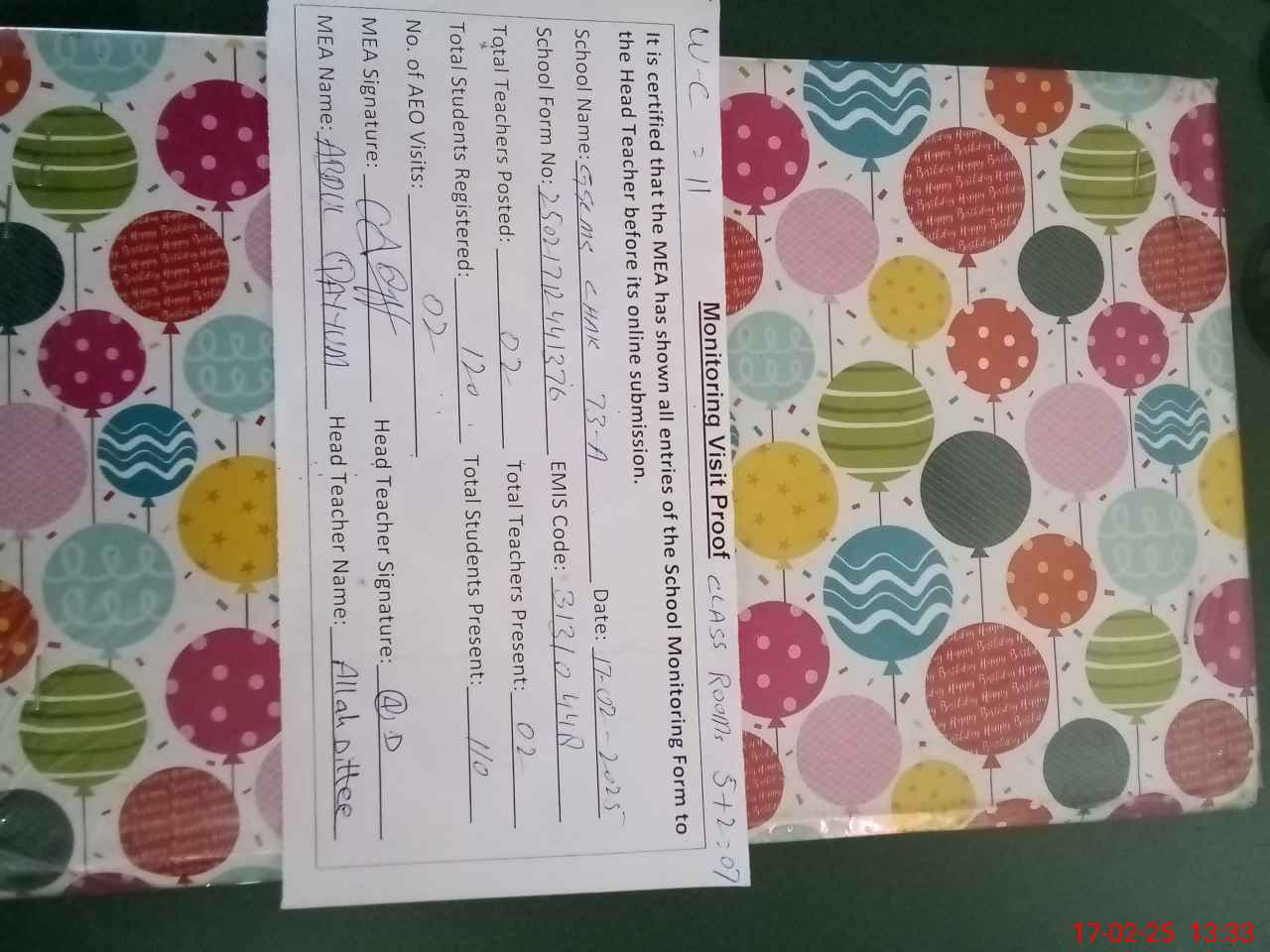 | EMIS Code: 31310448 | Name of School: GGCMS CHAK NO. 73/A | |||